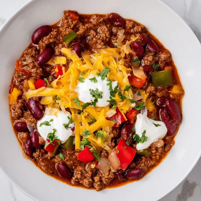 This recipe feeds six comfortably, but it scales beautifully—double it for a crowd and the cooking time stays roughly the same since you're just increasing volume, not technique. If ground turkey or chicken appeals to you, use it freely, though you'll lose some richness and might want to add an extra tablespoon of tomato paste to compensate. The beauty of chili is that it forgives experimentation as long as you respect the spice-to-liquid ratio and don't rush the simmer time.
