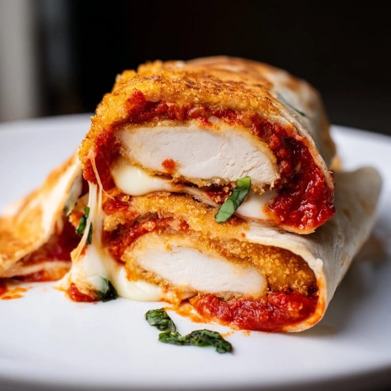 Pin it My sister showed up one Tuesday night with a craving she couldn't shake: chicken parm, but faster, messier, acceptable to eat on the couch. We didn't have pasta, but we had tortillas. What started as laziness turned into something I now make twice a month. That first wrap dripped marinara down my wrist, cheese stretched like pizza commercial footage, and we both laughed at how right it felt.