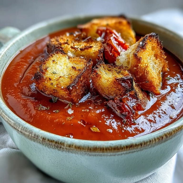 Pin it There's something almost magical about the moment when raw tomatoes transform in a hot oven—the kitchen fills with this concentrated, caramelized sweetness that smells nothing like fresh tomatoes and everything like comfort. I discovered this soup by accident one autumn when I had a glut of tomatoes that were past their prime for eating raw, and I was too stubborn to let them go to waste. That first batch was revelatory: simple roasting brought out flavors I didn't know were hiding, and suddenly I understood why this became a seasonal ritual for so many home cooks.