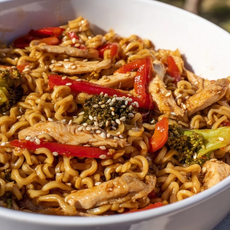 Pin it The smell hit me before I even opened the door—ginger, garlic, and something unmistakably spicy crackling in my neighbor's wok. She was making this stir-fry on a Tuesday night, and I stood there watching her toss everything together like it was the easiest thing in the world. I went home that night determined to recreate it, armed with a couple packs of ramen and whatever vegetables I had wilting in the crisper. It turned out better than I expected, and I've been making it ever since.