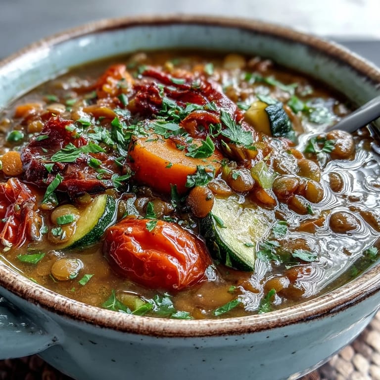 Pin it There's something about the smell of vegetables roasting in the oven that makes me stop whatever I'm doing and just breathe it in. I discovered this lentil soup on a chilly Tuesday when I had half a zucchini, some carrots getting soft in the crisper drawer, and a handful of cherry tomatoes I wanted to use before they went bad. What started as an attempt to clear out my vegetable drawer turned into one of those soups that tastes like it took hours, even though it honestly didn't. The roasting step—that's the real magic, the part that changed everything.